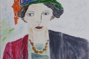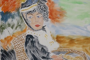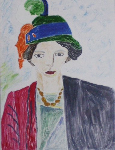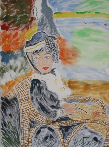 Nach "Dame in grüner Jacke" v. August Macke (Öl auf Malkarton)