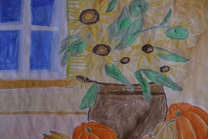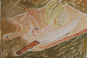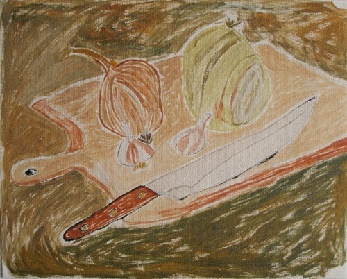 Stillleben mit Zwiebeln (Öl auf Malkarton)